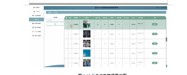 用户点击公告信息管理;在公告信息管理页面查询公告标题、公告图片、确诊人数、治愈人数、治愈率、隔离人数、死亡人数、死亡率、登记日期等信息,进行公告信息的查询操作;如图5-12所示。