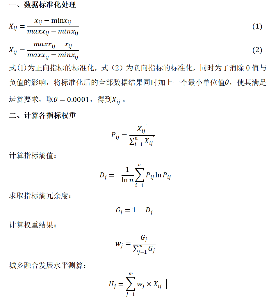 城乡融合发展水平计算方法二-熵权-TOPSIS