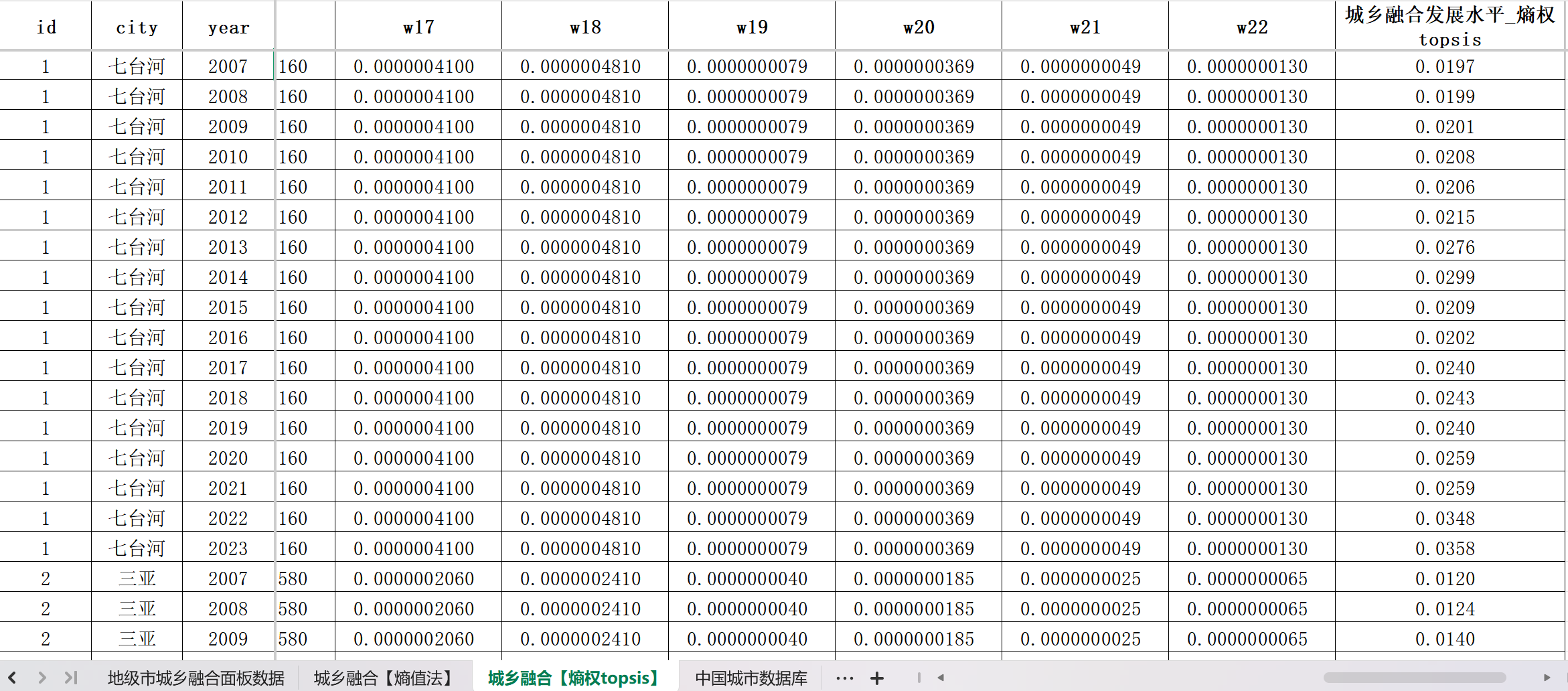 城乡融合发展水平_熵值法 | 城乡融合发展水平_熵权topsis | 注:最终以变量说明表为准 |