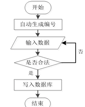 程序的添加功能允许操作者录入各类数据。无论是用户信息还是其他模块的信息,都遵循相同的信息添加流程(如图3.3所示)。程序首先对输入的数据进行评估,预设的规则代码会判断数据是否合规。一旦通过验证,数据将被记录到相应数据库中。