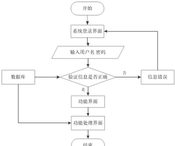 向用户提供软件时,需提供详细的操作流程图(如图3.1所示),帮助理解具体操作步骤。当前大多数程序遵循一套基本标准:首先通过登录界面提交信息,经验证无误后,用户可在功能区执行相关操作。