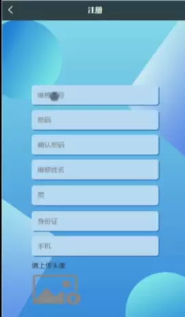 首次使用本小程序的用户,首先需要进行注册,点击“注册”按钮后会进入注册页面,在注册表中填写个人信息,确认信息无误后,系统将跳转至登录界面,用户成功登录后可享受本小程序提供的所有功能。注册界面如图5-2所示。