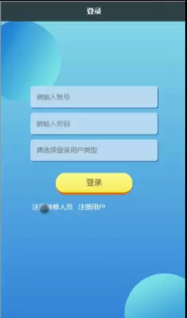 首先双击打开小程序客户端,连上网后会显示出本系统的登录页面,这是进入小程序的第一个页面“登录”,能够成功进入此登录页面则表明小程序已开启成功,接下来就可以操作本系统提供的所有其他功能。登录界面如图5-1所示。