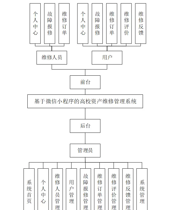 - 功能需求:管理人员能管理个人信息,包括维修人员、用户、故障报修、维修订单、维修评价、维修反馈及系统管理等功能的处理。