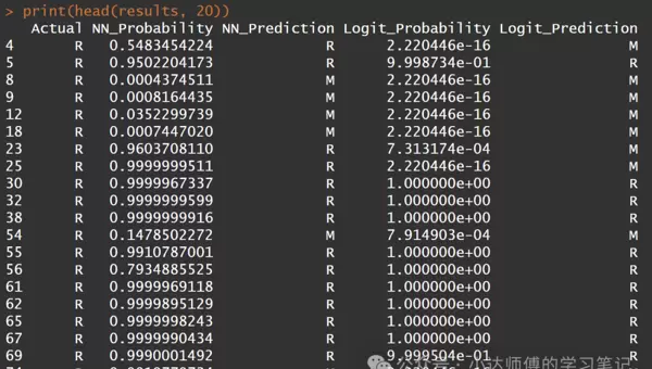 简要查看这两个模型的预测结果(受篇幅限制,仅展示前20个)。