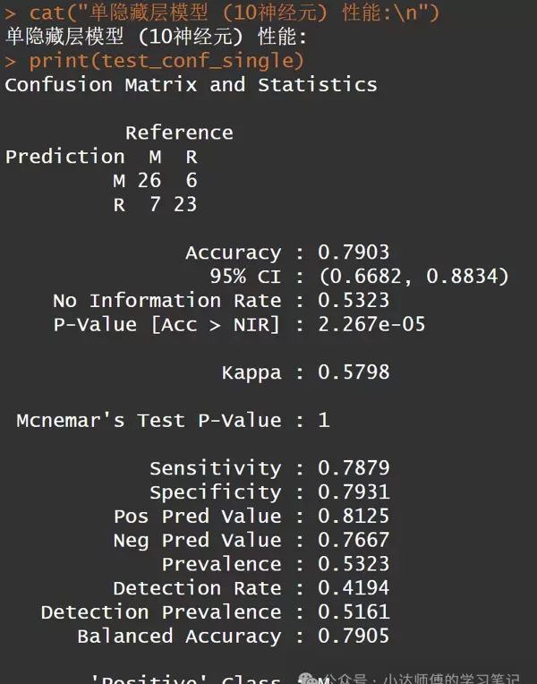 cat("单隐藏层模型 (10神经元) 性能:\n")