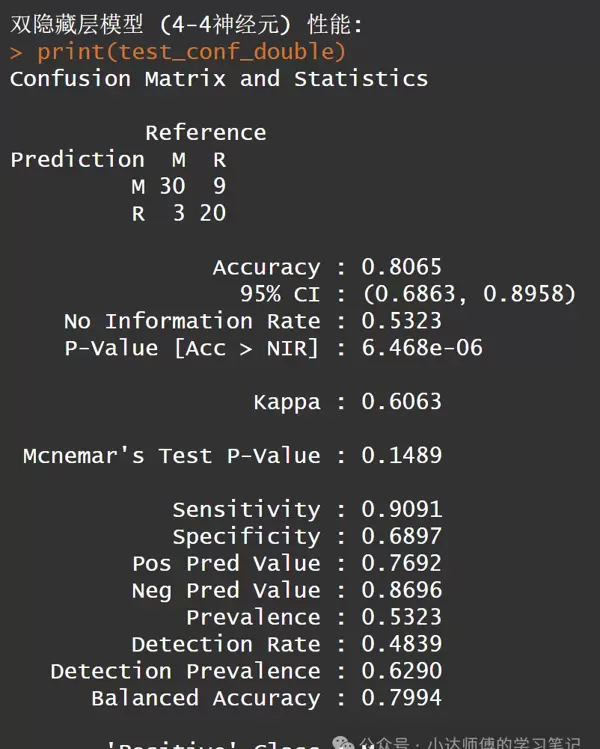cat("\n双隐藏层模型 (4-4神经元) 性能:\n")