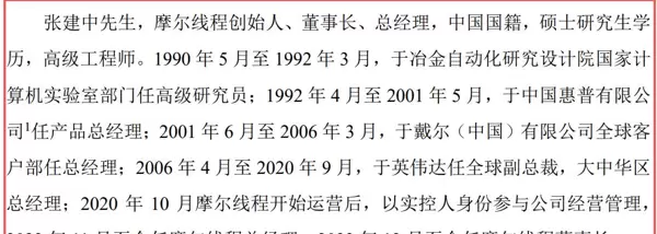 其中,周苑曾在英伟达担任市场生态高级总监,2020年10月摩尔线程开始运营后,以联合创始人身份参与公司管理。2023年11月至2024年10月,周苑曾任摩尔线程财务负责人,现为公司董事。