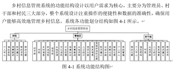 研究关注于乡村信息管理系统的功能性设计与优化,旨在建立一个全面、高效且易于使用的综合信息平台,以满足乡村治理、服务村民和促进乡村发展的多样化需求。系统包括了丰富的功能模块,从基本的乡村信息管理到多元的服务与互动功能,致力于推动乡村管理的数字化变革。在乡村治理方面,系统为村干部提供了方便的管理工具,涵盖人口统计、土地资源管理和党组织活动记录等功能,助力村干部高效工作,提升乡村治理效能。系统还设置了计划生育政策、政法法规、法律知识等模块,为村民提供权威的信息资源,增强村民的法制观念和政策理解能力。为了丰富村民的生活,系统设有读书栏目、文化活动、党群论坛等功能,促进村民之间的交流与学习,营造积极向上的乡村文化环境。土地流转、党费缴纳等功能模块则直接服务于村民的日常生活需求,为村民提供便利。在党的建设方面,党员分类、党员信息管理、党组织活动记录等功能模块,有助于增强党组织的凝聚力和战斗力,推动乡村党建工作的规范化和信息化建设。投诉建议、举报记录等模块为村民提供了反馈途径,保障村民权益,促进乡村和谐发展。系统管理和个人中心功能则为用户提供了个性化的操作体验,确保系统的稳定运行和数据安全。通过整合这些功能模块,本研究旨在构建一个全面的乡村信息管理平台,为乡村振兴提供强有力的技术支持。