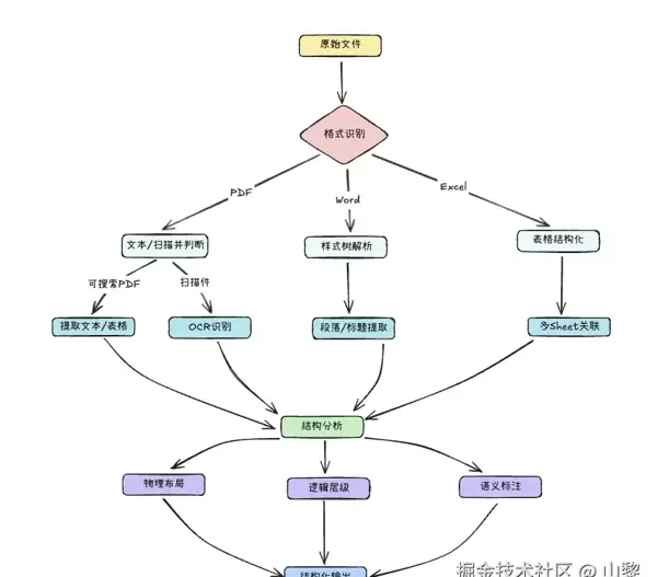 文档解析作为RAG系统的前端核心处理模块,承担着将原始数据转化为可计算知识的关键使命。其核心任务首先体现在对多源异构文档的智能识别与适配解析上,系统需要准确识别PDF、Word、Excel等数十种常见文档格式,并针对每种格式的特点调用专用解析引擎。例如,面对扫描版PDF时需启动OCR识别,处理复杂Word文档时要保留样式结构,解析Excel则需处理公式计算和多Sheet关联等特性。