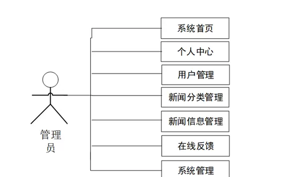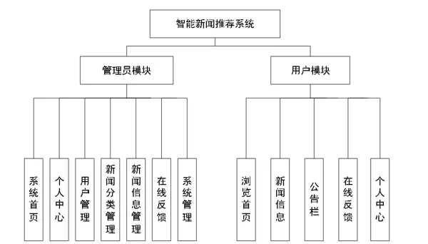 智能新闻推荐系统的用户主要包括两类:管理员和普通用户。管理员拥有系统的最高权限,而普通用户则具有由管理员分配的权限,只能操作自己的个人信息。系统根据这两种用户角色划分了两大功能模块。