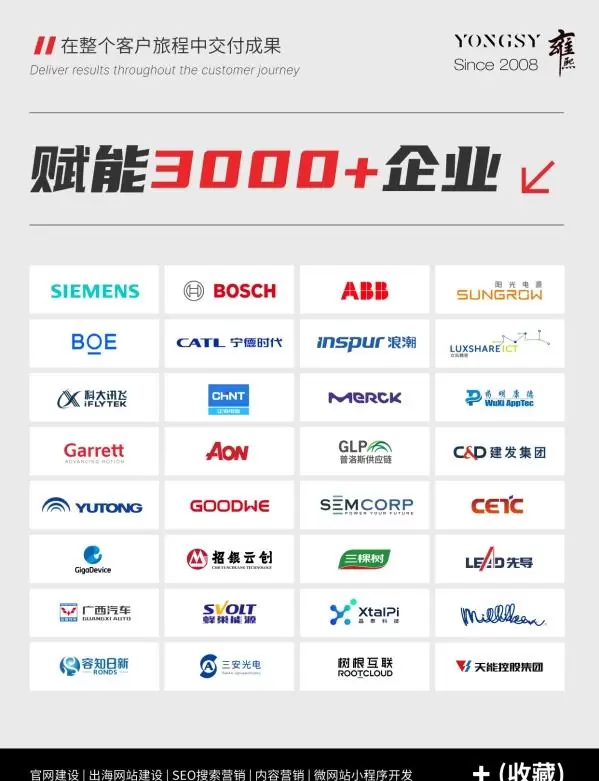 通过关注最新的网站设计趋势和用户需求的变化,上海雍熙YONGSY已成功为多家生物医药企业打造了具有竞争力和辨识度的网站。这些成功的案例不仅展示了公司的实力,还帮助客户在激烈的市场中脱颖而出,提高了品牌的定位和认知度。