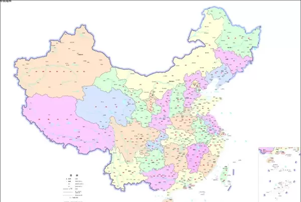- 中国全图及包含邻国边界的区域地图。