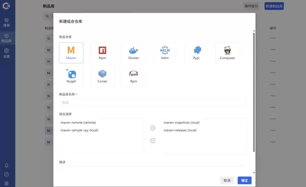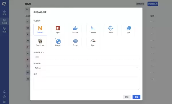 点击新建制品库,选择新建本地库,填写相关信息并确认即可。