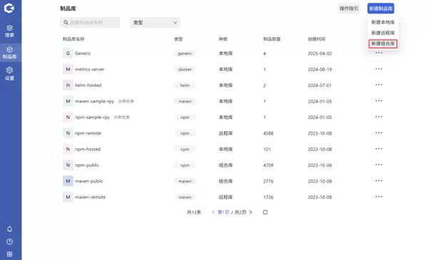 点击新建制品库,选择新建组合库,输入相关信息并确认即可。
