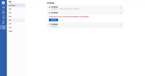 归档后的知识库可以取消归档,取消后可继续添加文档和目录。