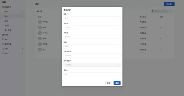 | 初始密码 | 必填 | 为用户设置的初始密码,若过于简单,首次登录时需更改 |