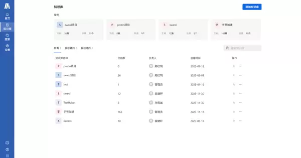 | 所有知识库 | 显示当前登录用户有权查看的所有知识库,包括公开的知识库和自己的私密知识库 |
