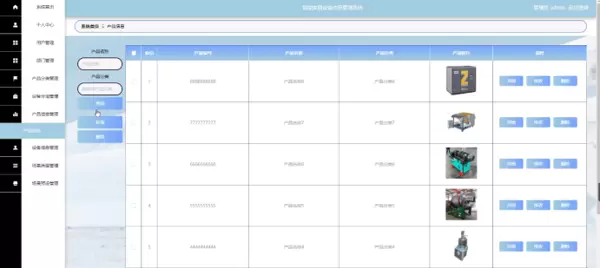管理员点击产品信息管理。在产品信息页面输入产品名称或分类进行检索、添加或移除产品信息列表,并根据需求对产品信息详情执行查看、修改或删除操作;如图5-7所示: