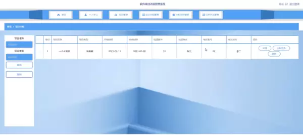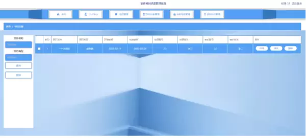 管理员点击项目管理。在项目页面输入项目名称、项目类型和选择是否通过进行查询、删除或导出项目列表,并根据需要对项目详情信息进行查看详情、修改或删除操作。如图5-6所示: