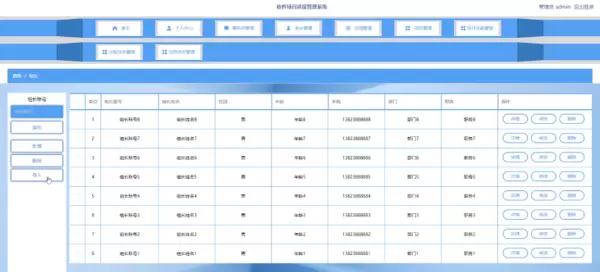 管理员点击经理管理。在经理页面输入经理账号进行查询、新增、删除或导入经理列表,并根据需要对经理详情信息进行查看详情、修改或删除操作。如图5-5所示: