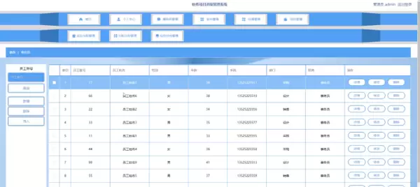 管理员点击事务员管理。在事务员页面输入员工账号查询、新增、删除或导入事务员列表,并根据需要对事务员详情信息进行查看详情、修改或删除操作;如图5-3所示: