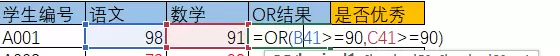 e.g. 只要有一门成绩大于等于90分,则返回TRUE,否则返回FALSE: