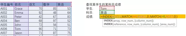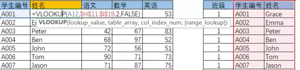 - col_index_num,第三个参数表示我要查找的学生姓名位于选中的table_array的第几列;