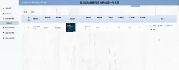 - 招聘信息管理:发布和管理实验室的招聘信息,包括职位详情、申请条件等。