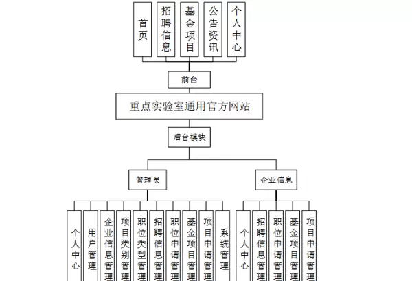 重点实验室通用官网的构建旨在辅助重点实验室的日常管理。通过基础信息管理实现精准安排,根据不同用户角色权限展示不同的信息界面。依据需求阶段分析结果,系统大致包含的功能如下图所示: