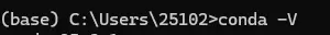 验证安装,打开 Anaconda prompt,在终端命令行输入命令:conda -V,出现以下界面则成功