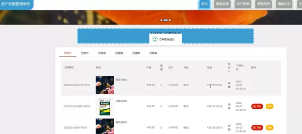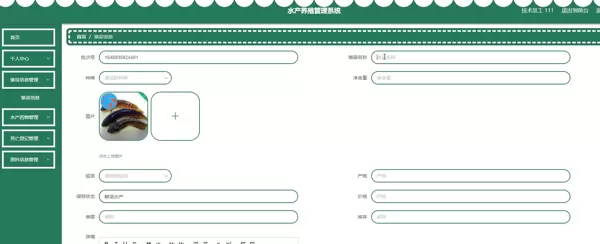 项目功能:养殖户,技术员工,技术经理,种类,雏苗信息,药物分类,原料分类,水产药物,养殖技巧,死亡登记,原料信息,雏苗入库,雏苗出库,饲料投放登记,药物投放登记