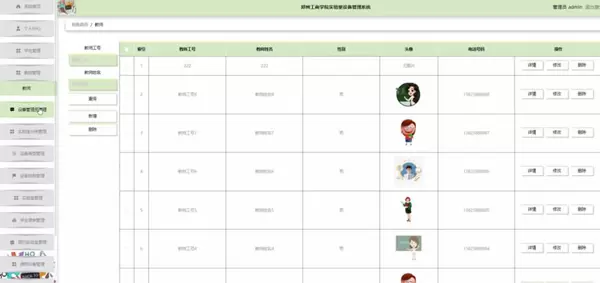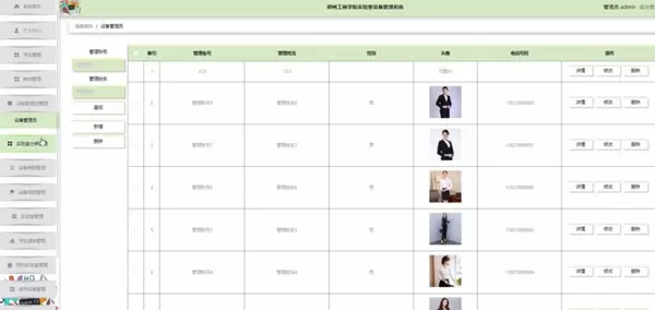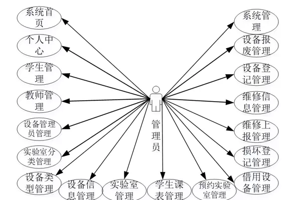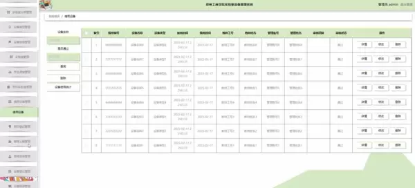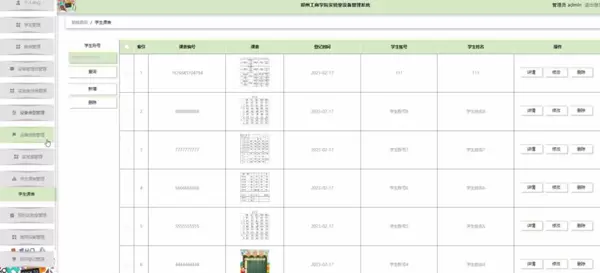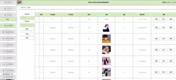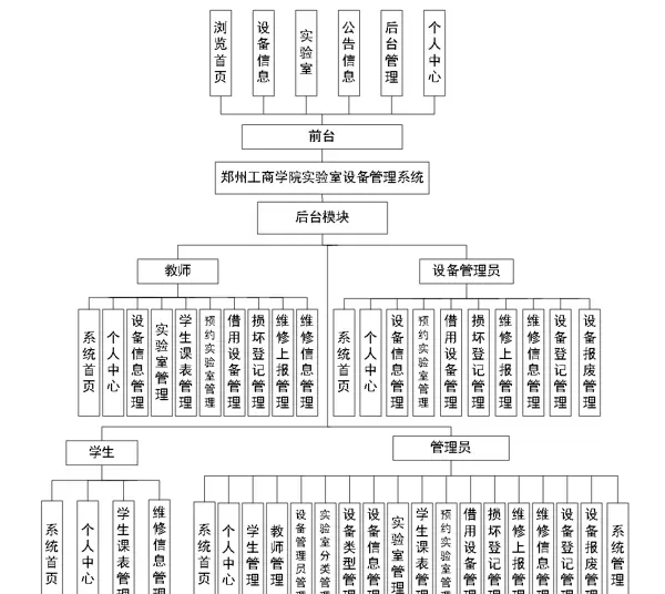 郑州工商学院实验室设备管理系统根据权限类型进行分类,主要可分为学生、教师、设备管理员和管理员四大模块。管理员模块主要针对整个系统的管理进行设计,提高了管理的效率和规范性。