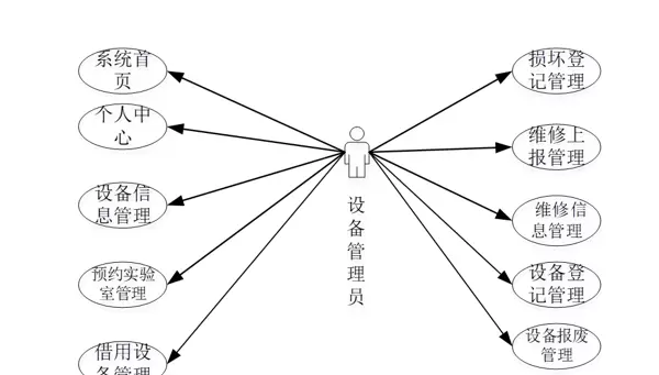 - (3)、设备管理员关键功能包括系统首页、个人中心、设备信息管理、预约实验室管理、借用设备管理、损坏登记管理、维修上报管理、维修信息管理、设备登记管理、设备报废管理等有关功能。设备管理员用例如下: