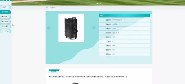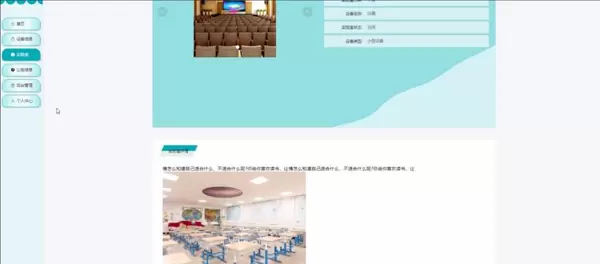 学生点击设备信息后,在设备信息页面的搜索栏中输入设备名称进行查询,可以查看到设备编号、设备名称、类型、型号、购买日期、价格、数量、图片、状况、管理员账号及姓名等信息,如图5-4所示。