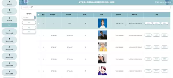 用户管理;在用户页面输入用户账号进行检索,新增或移除用户信息列表,并依据需求对用户详细资料进行查看详情、修改或删除操作;如图5-7所示。