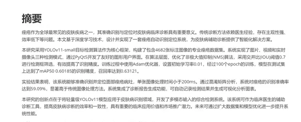 基于YOLOv11的痤疮检测系统在以下方面具有显著的创新: