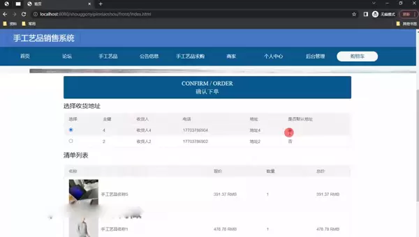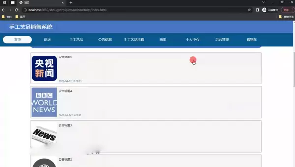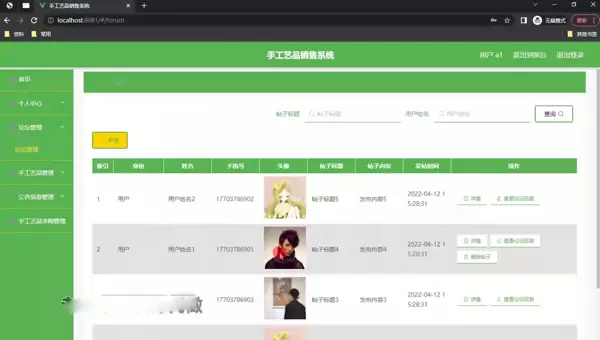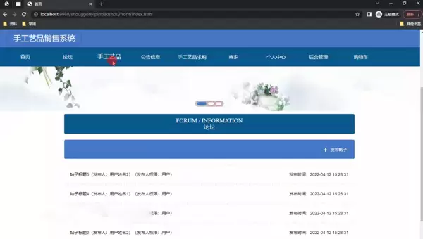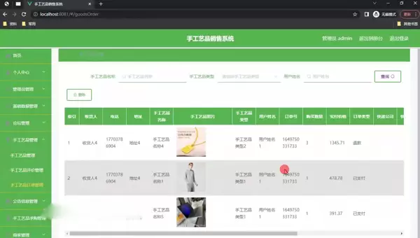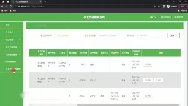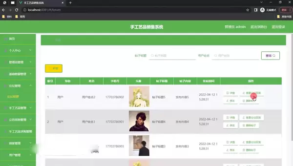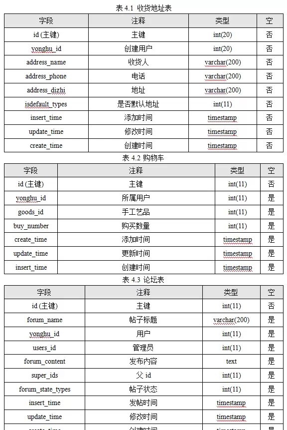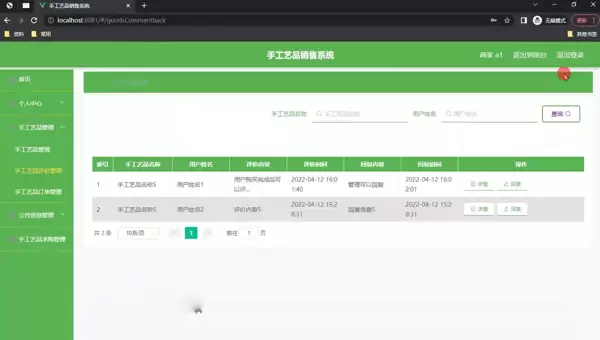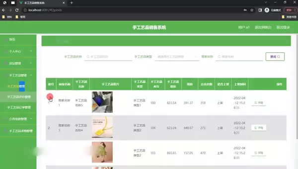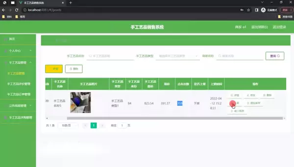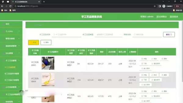 - 手工艺品管理:包含对手工艺品进行管理和发布评价的功能;