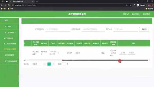- 商家管理:允许管理员对手工艺品供应商的信息进行增删改查;
