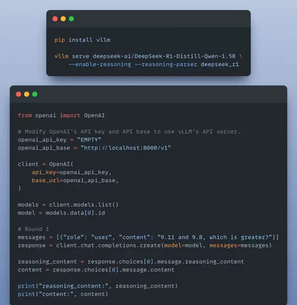 vLLM 是一个快速且易于使用的 LLM 推理和服务库。只需几行代码,您就可以在本地以 OpenAI 兼容格式运行 LLM(如 DeepSeek):