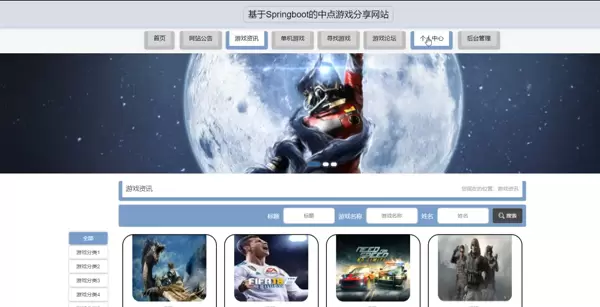 用户, 网站公告, 游戏资讯, 游戏分类, 单机游戏, 寻找游戏