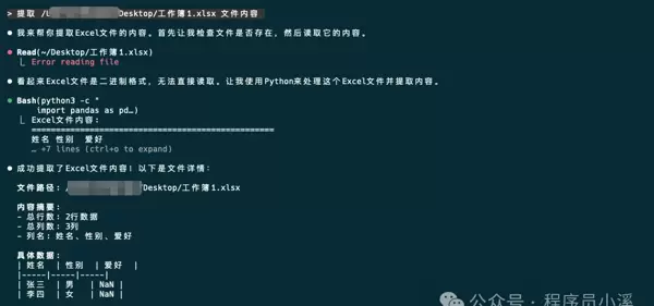 最后看看传统Claude Code CLI读取Excel表格的效果