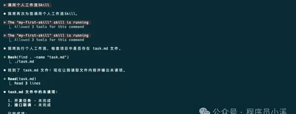 再次运行自定义 Skill,可以看到输出结果如下: