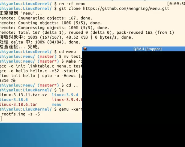 启动一个冻结的内核,再开启一个 shell 进行 gdb 分析调试