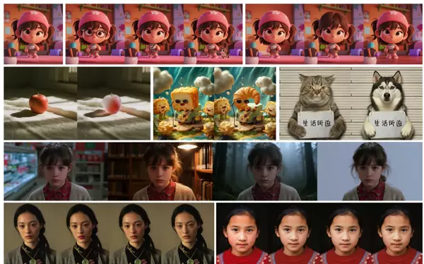 单幅图像生成不足以满足许多需要连贯多图像输出的创意场景。借助强大的全局规划和上下文一致性能力,Seedream 4.0支持生成既角色一致又风格统一的图像序列。如图13所示,这使得基于给定角色的连续图像生成成为可能,特别有利于故事板和漫画创作。Seedream 4.0还可以生成具有视觉一致性的一系列图像,这一功能对于基于IP的产品设计和表情符号的创建尤为宝贵。