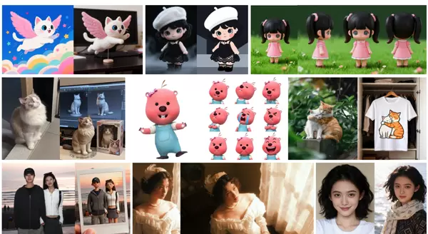 与图像编辑不同,基于参考的生成面临更大的保留与创新之间的权衡难题。这种困难源于应保留内容的内在模糊定义。这可能是某人的身份或知识产权、特定的艺术风格,甚至是一个抽象的概念。因此,可能的应用范围更广且更多样化。如图9所示,Seedream 4.0支持在2D/3D领域内不同视角下的无缝转换。它可以从单一参考图像生成衍生设计,如玩偶、服装或表情包。此外,得益于Seedream 4.0的强大一致性,它可以在身份敏感场景中有效应用,包括生成不同风格的人像照片或为电影创建角色。