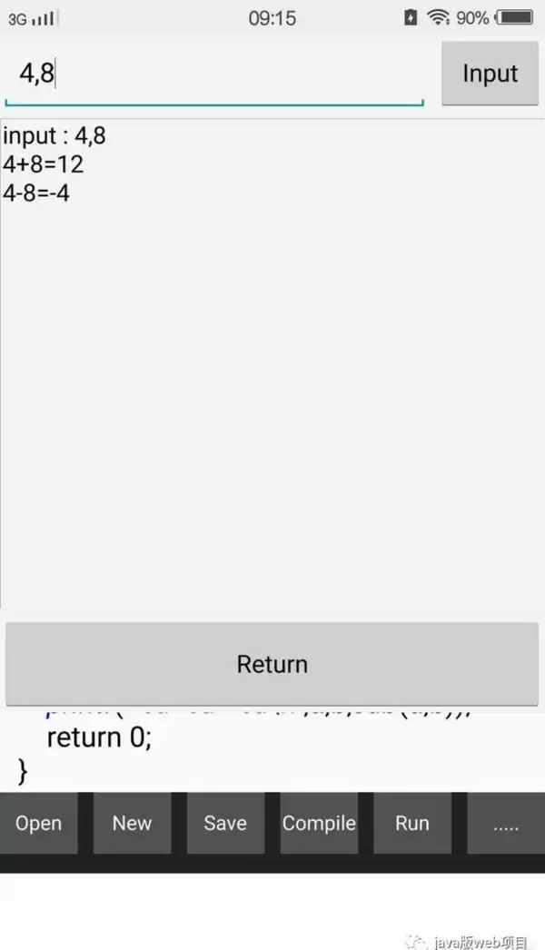 - 程序运行的截图如下,需要先输入两个数字,才能正常运行: