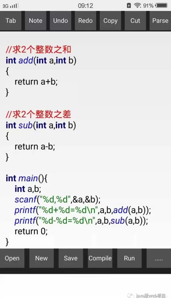 - 测试代码如下,这里编写了两个函数,分别计算两数之和与差值,非常简单: