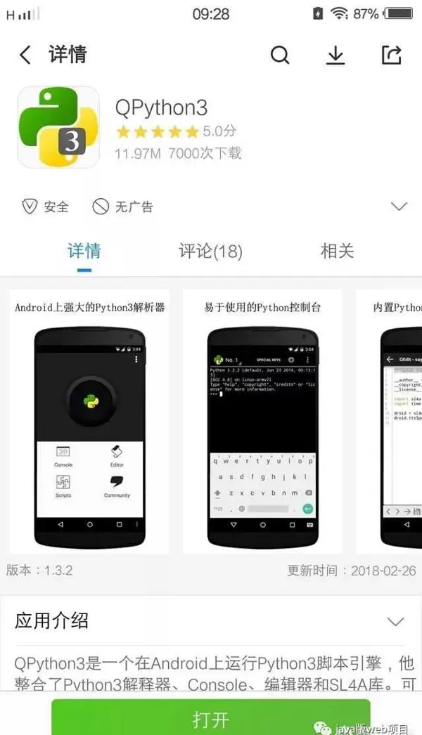- 下载安装,直接在应用商店搜索“QPython3”,直接下载安装,如下: