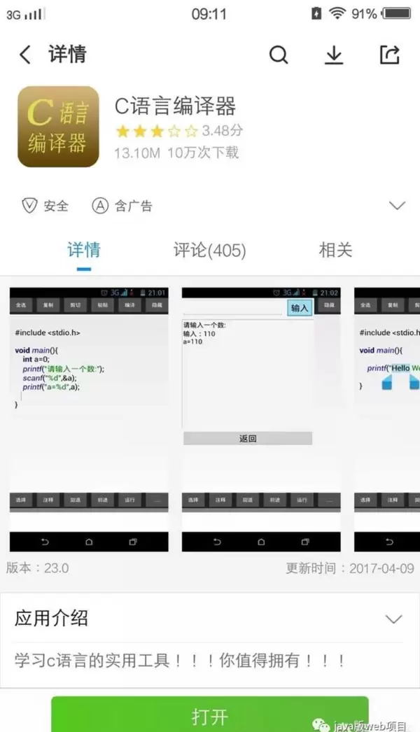- 下载安装,以我的vivo手机为例,直接打开“应用商店”,搜索“C语言编译器”,如下图,直接点击下载安装: